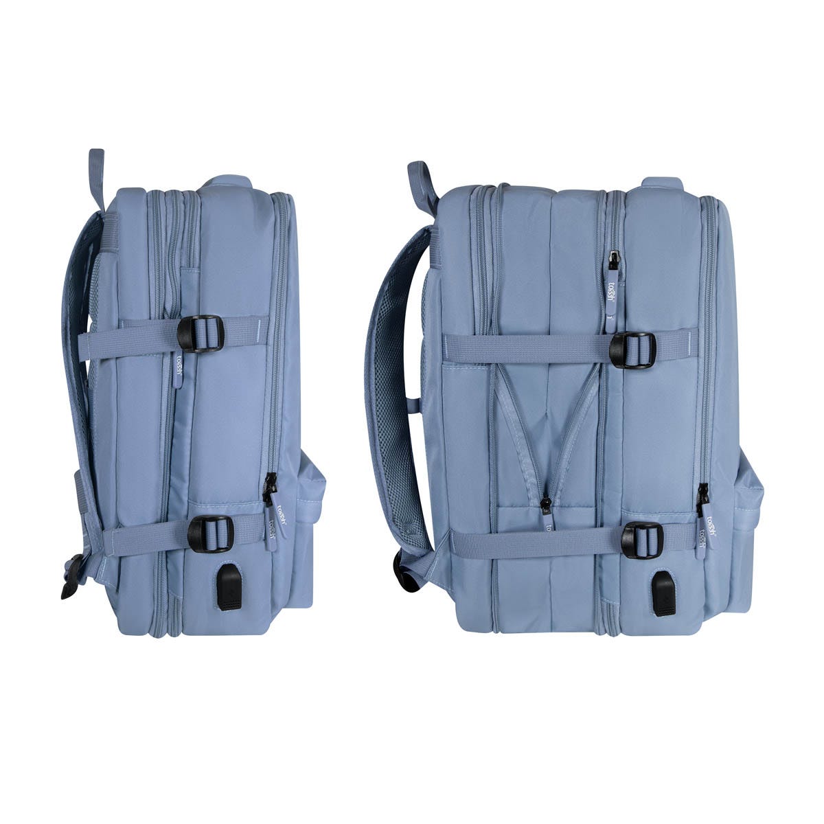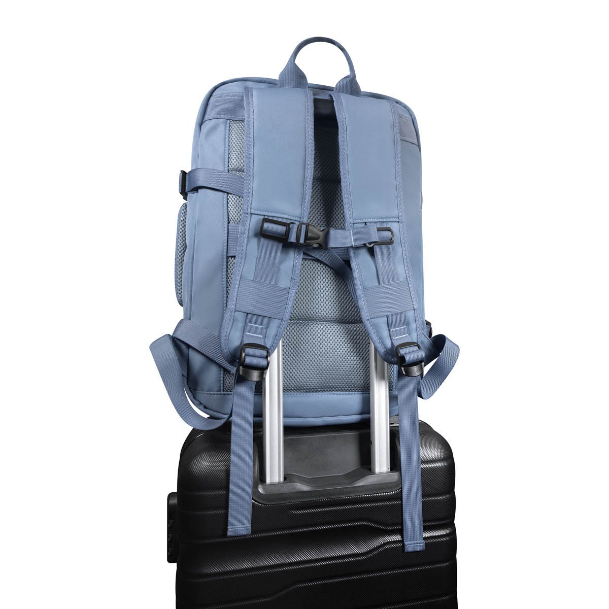 Mochila con amplios espacios diseñados para todas tus pertenencias personales. Esta mochila cuenta con un compartimento acolchado para laptop de hasta 16". Su capacidad de almacenamiento se expande fácilmente para adaptarse a tus necesidades. Equipada con una agarradera superior y lateral lo que te ofrece trasladarla de manera versátil. Las asas acolchadas para llevar en la espalda garantizan comodidad durante todo el día, mientras que la conveniente salida USB te permite cargar tu dispositivo móvil sobre la marcha. Además, la banda en la parte posterior facilita su transporte en trolley.