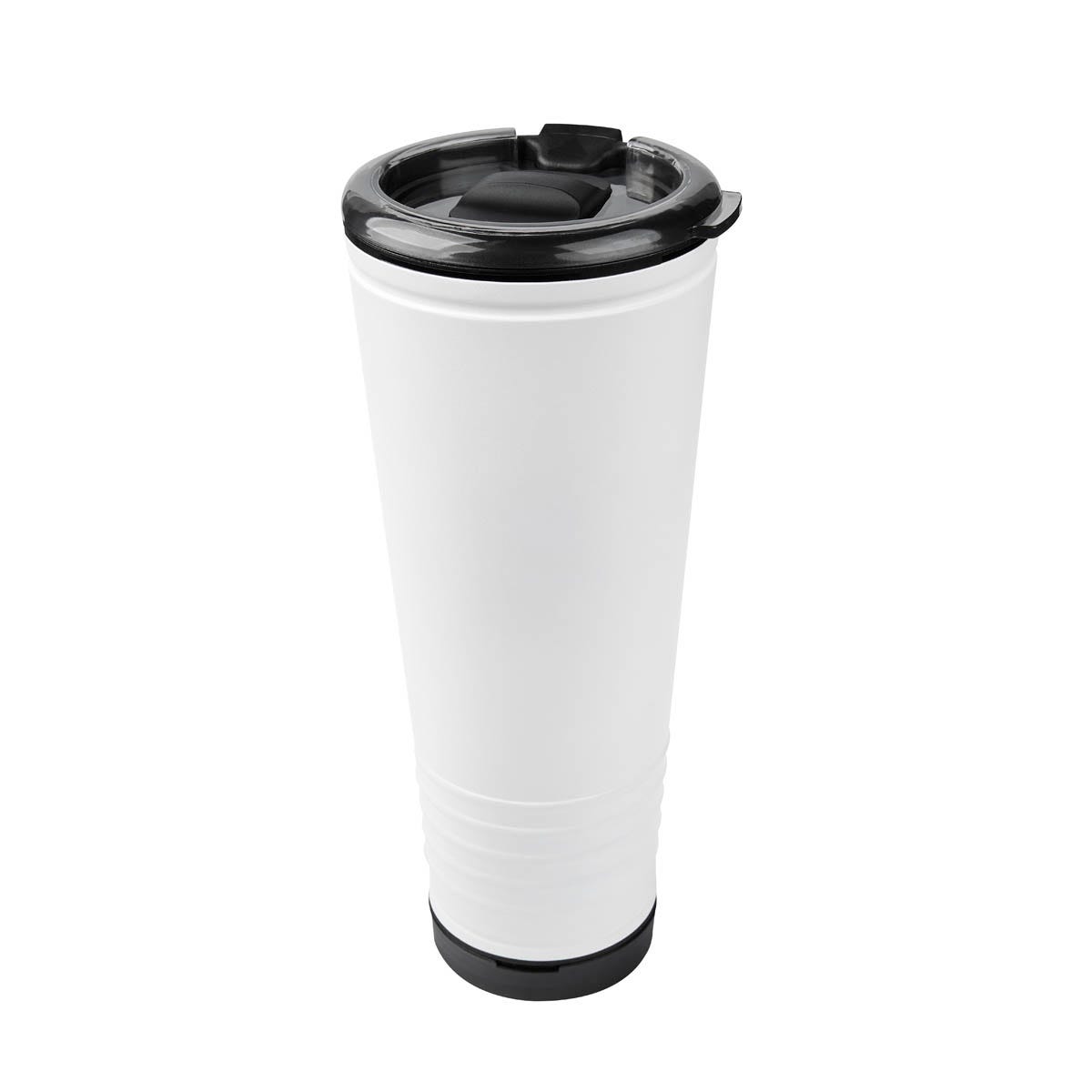 Termo equipado con una boquilla especial en la tapa que realiza una doble función; como trompeta, para animar tu evento favorito y al mismo tiempo, disfrutar de tu bebida preferida. Termo doble pared. Pared interna de plástico y externa de acero inoxidable. Tapa de plástico con sistema push y válvula de seguridad. Capacidad de 24 Oz. Base de 7 cm de diámetro. Incluye caja individual.